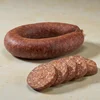 Kars Dana Kasap Sucuk – 1 KG Kars Dana Kasap Sucuk, katkı maddesi ve yapay koruyucu içermeyen doğal içeriğiyle, geleneksel lezzeti sağlıklı beslenme anlayışıyla buluşturur. Kars’ın temiz doğasında yetişen hayvanların etlerinden, ustalıkla hazırlanan bu sucuk; yoğun aroması, dengeli baharat oranı ve yüksek protein değeriyle öne çıkar. Doğal yapısını koruyan Kars dana sucuk, hem lezzeti hem de besleyici özellikleri sayesinde kahvaltı sofralarının vazgeçilmezlerinden biridir. Yumurtayla birlikte, tek başına ya da tost, sandviç ve pizzalarda kullanıldığında yemeklere güçlü ve karakteristik bir tat katar. Yüksek protein içeriği sayesinde uzun süre tok tutar ve günlük besin ihtiyacınızı destekler. Doğal Baharatlar, Ustalık ve Etin Mükemmel Uyumu Kars Dana Kasap Sucuk, özenle seçilmiş doğal baharatların kaliteli dana etiyle harmanlanmasıyla hazırlanır. Izgarada ya da tavada pişirilebilir; sandviçlerden ana yemeklere kadar birçok tarifte rahatlıkla kullanılabilir. Güveç, kuru fasulye ve çorba gibi yemeklere eklendiğinde aromayı derinleştirir, lezzeti bir üst seviyeye taşır. Katkısız üretim süreci sayesinde, geleneksel şarküteri lezzetlerini güvenle tüketmek isteyenler için ideal bir tercihtir. Sağlıklı ve Dengeli Beslenme İçin Doğru Tercih Sağlıklı beslenme alışkanlıklarını destekleyen Kars dana sucuk, ailece gönül rahatlığıyla tüketilebilecek yöresel bir lezzettir. Modern üretim anlayışıyla hazırlanmasına rağmen, köklü Kars mutfağının izlerini taşır. Her öğünde hem lezzet hem de besin değeri sunmayı hedefler. Yüksek protein oranı sayesinde spor yapanlar ve dengeli beslenmeye özen gösterenler için de uygundur. Kontrollü tüketildiğinde diyet programlarına rahatlıkla dahil edilebilir. Türk Mutfağının Vazgeçilmezi: Dana Sucuk Türk mutfağının en sevilen şarküteri ürünlerinden biri olan sucuk, kendine özgü aromasıyla her yaş grubunun favorisi olmayı başarır. Kars Dana Kasap Sucuk, 1 Kilogram aralığındaki ideal porsiyonu ve özenli üretimiyle doğru bir seçim yapmanızı sağlar. Tamamen katkısız, doğal ve yöresel olan bu sucuk; lezzeti, besin değeri ve güvenilir içeriğiyle sofralarınıza değer katar.
